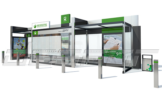 В составе павильона применена патентованная НОВИНКА компании "Дизфор" - Болларды - защитные ограждения от автотранспорта