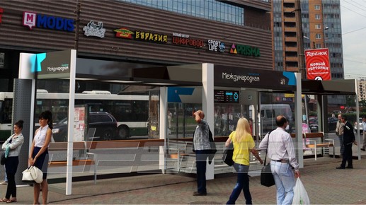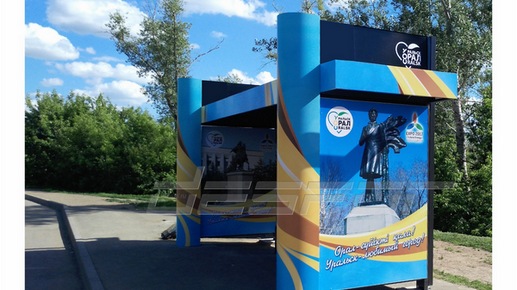 Поставили остановки для Казахстана в город Уральск, заказчик выполнил "веселый" брендинг павильонов, добавил настроения улицам города