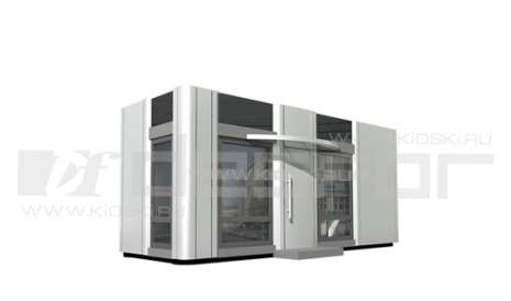Торговый павильон модульного типа с использованием алюминиевых композитных панелей во внешней отделке.